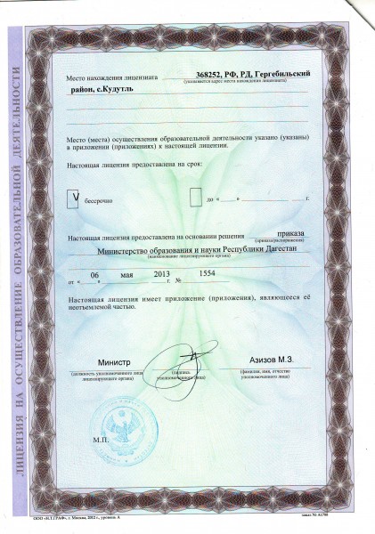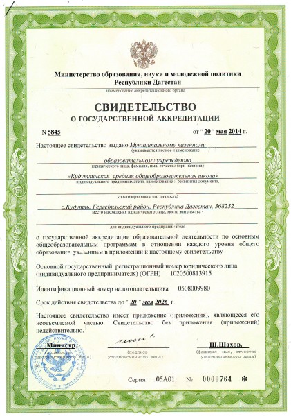 Адрес местонахождения образовательной организации* 368252, республика Дагестан, Гергебильский район, село Кудутль, улица Махмуда Кахаб росу, дом 5